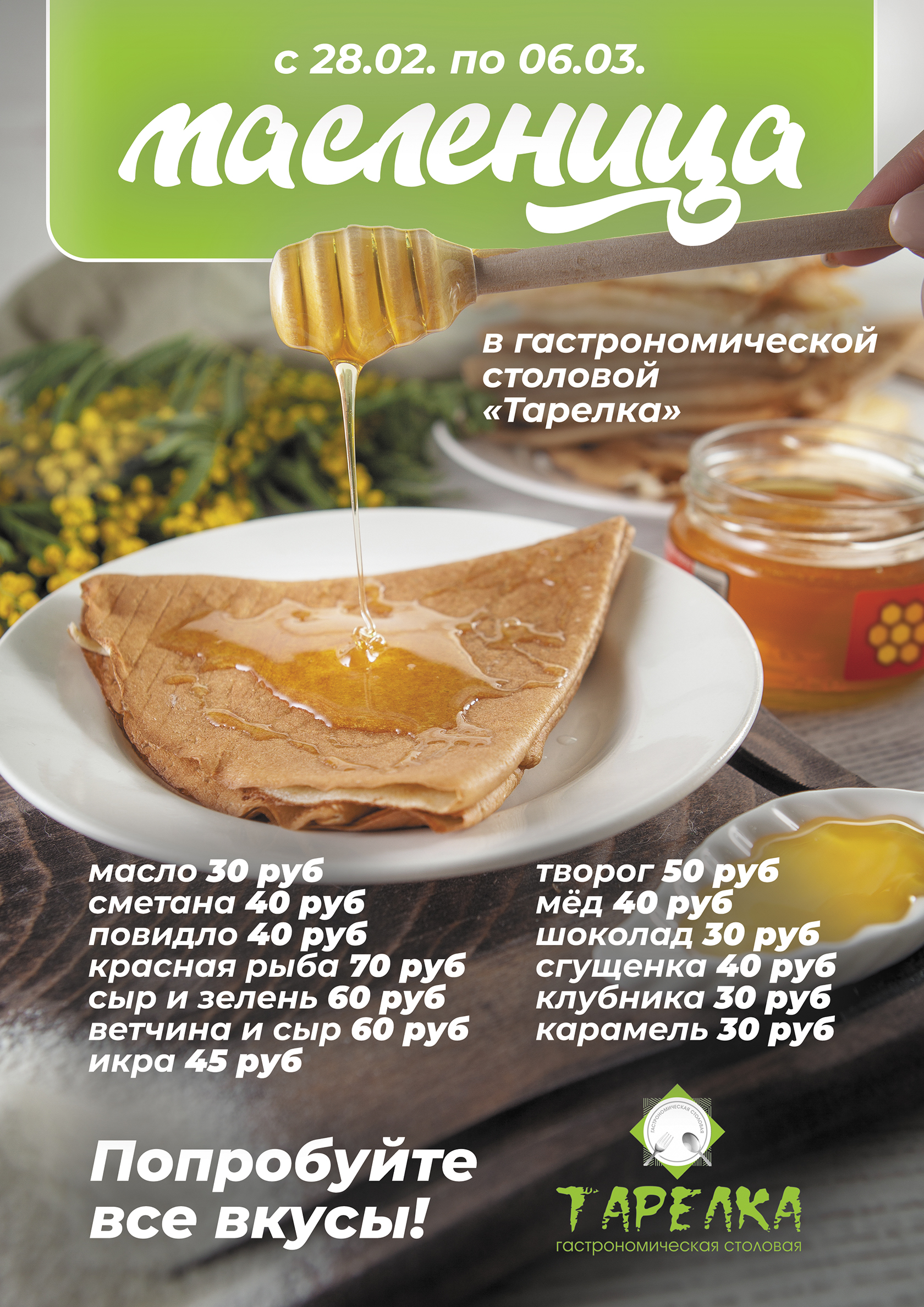 Попробуйте все вкусы блинчиков в Масленичную неделю!